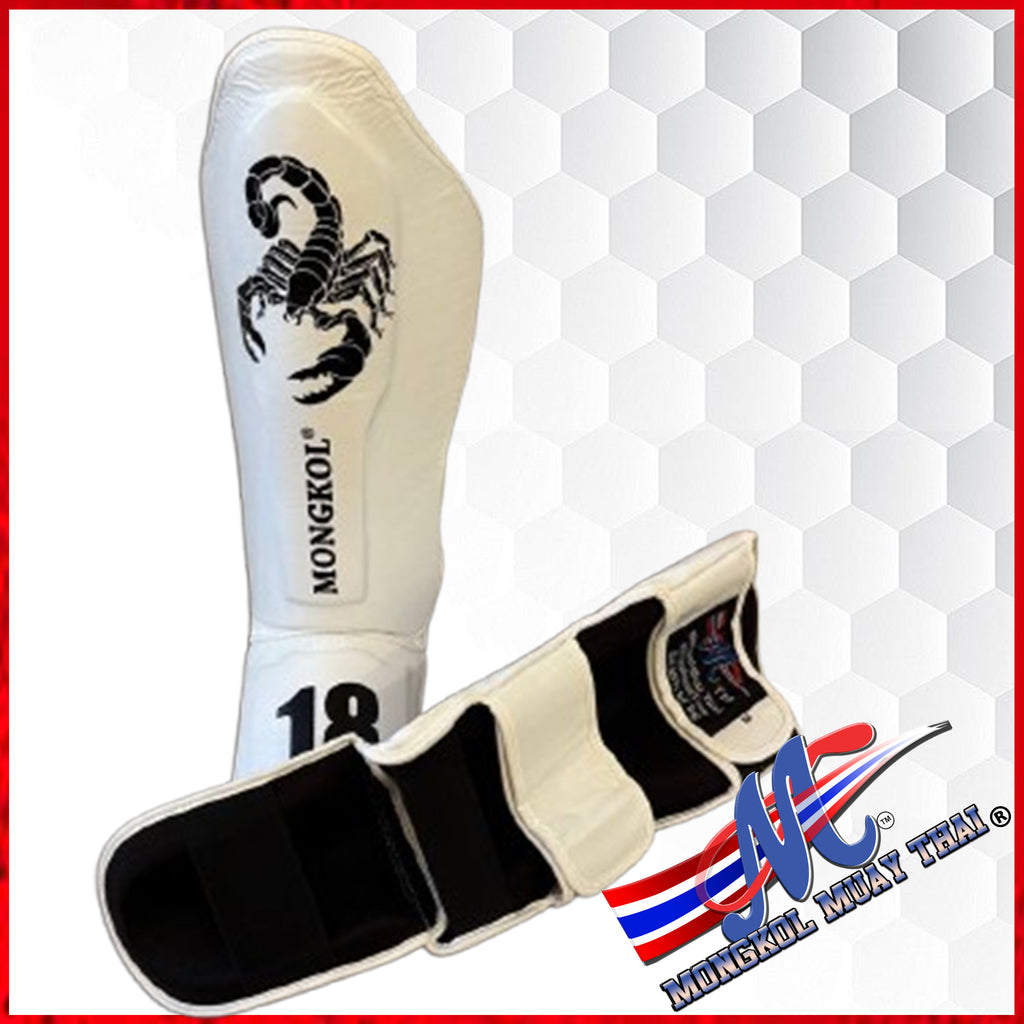 White Scorpion Mongkol Shin Guards – Real Leather | White